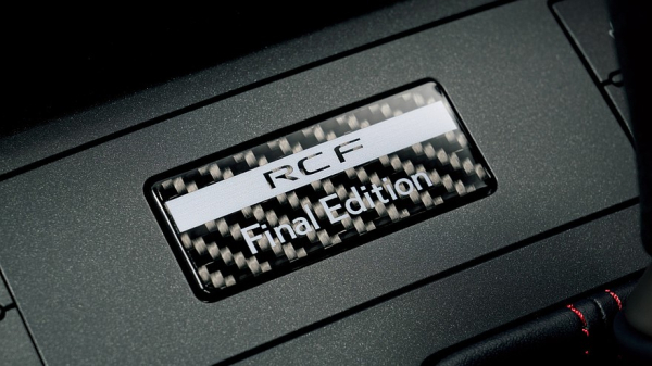 В свою очередь, у Lexus RC F Final Edition в списке отличий числятся: 19-дюймовые кованые легкосплавные диски BBS с глянцево-чёрным покрытием Metal Star, сочетающиеся тоже с красными тормозными суппортами. Предусмотрены такие же боковые зеркала, а ещё сплиттер, боковые юбки, диффузор, активное заднее антикрыло и крыша из углеволокна. Для этой двухдверки предусмотрели семь вариантов цвета кузова, в том числе Sonic Iridium.