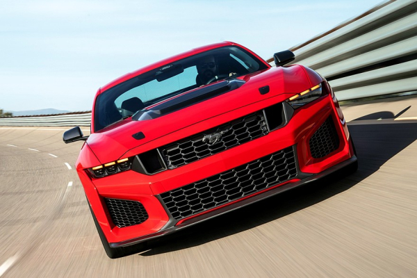 Ford Mustang GTD — это, напомним, самый крутой из существующих заводских Мустангов, у него собственное уникальное шасси, разработанное в партнёрстве с канадской фирмой Multimatic, компоновка типа Transaxle (мотор спереди, а коробка передач отнесена к задним колёсам) и сильно перекроенный по сравнению с другими Мустангами кузов. Короче говоря, Mustang GTD — это почти суперкар, и цена у него почти как у суперкара — от 325 000 долларов. До появления GTD самой крутой версией Мустанга была Shelby GT500, но в нынешнем седьмом поколении Мустанга заводских версий с именем Shelby нет, и, судя по всему, уже не будет — это было понятно ещё в начале прошлого года, когда компания Shelby American представила собственный новый Shelby GT350 на базе Мустанга, а Ford не имеет к этой машине никакого отношения. Что касается топового Shelby GT500, то сегодня стало окончательно ясно, что ему на смену пришёл Mustang Dark Horse SC.